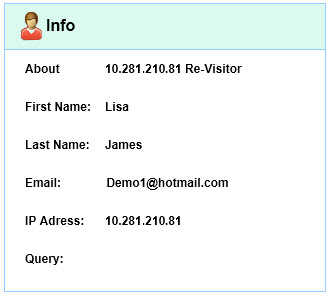 ● Info Tab: The Info tab on the upper right hand corner of the Chat Console displays the information for the Visitor with whom you are currently chatting with. To display the information on the Info tab, click the name in the tab on the left hand corner of the screen.